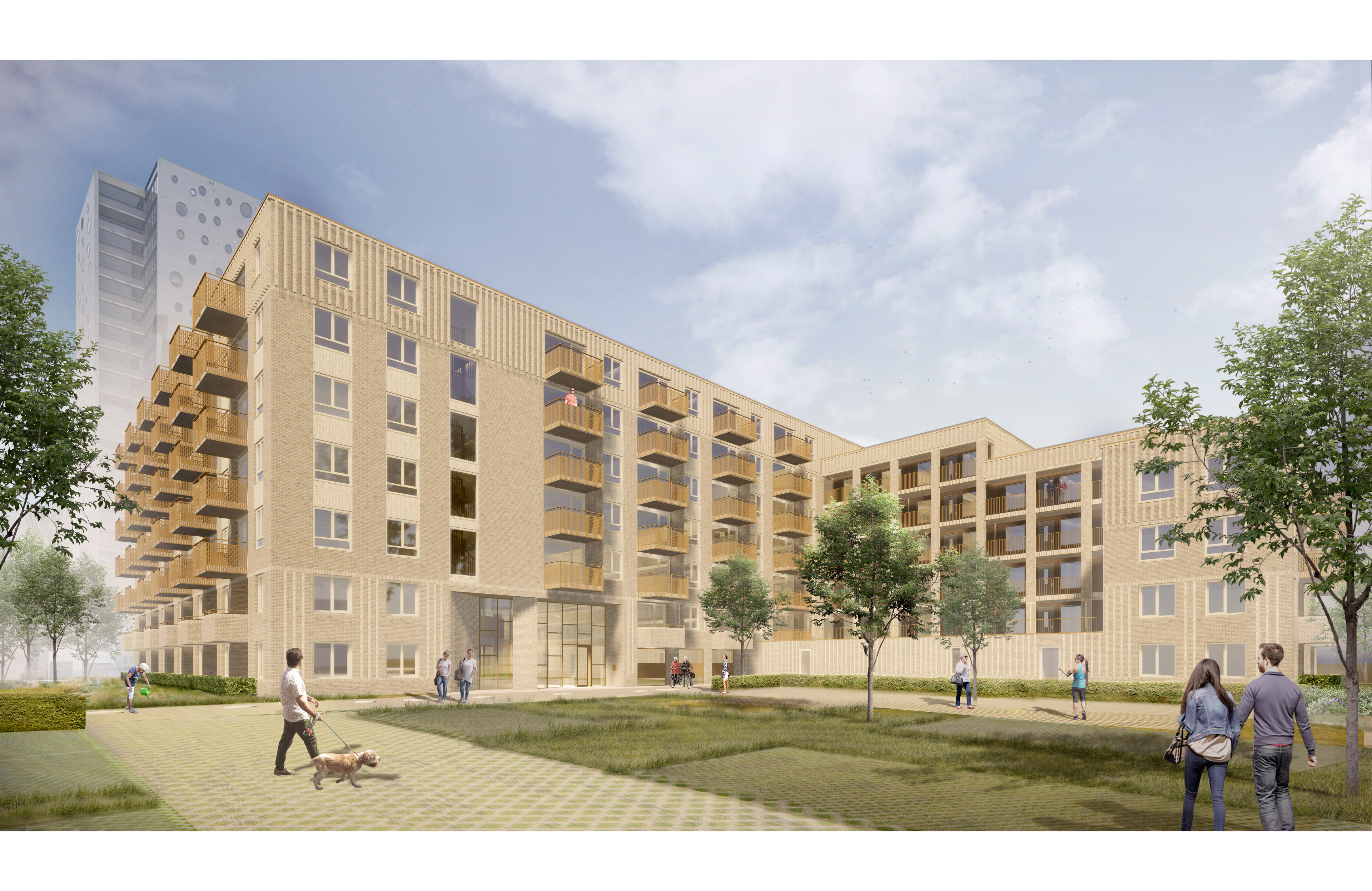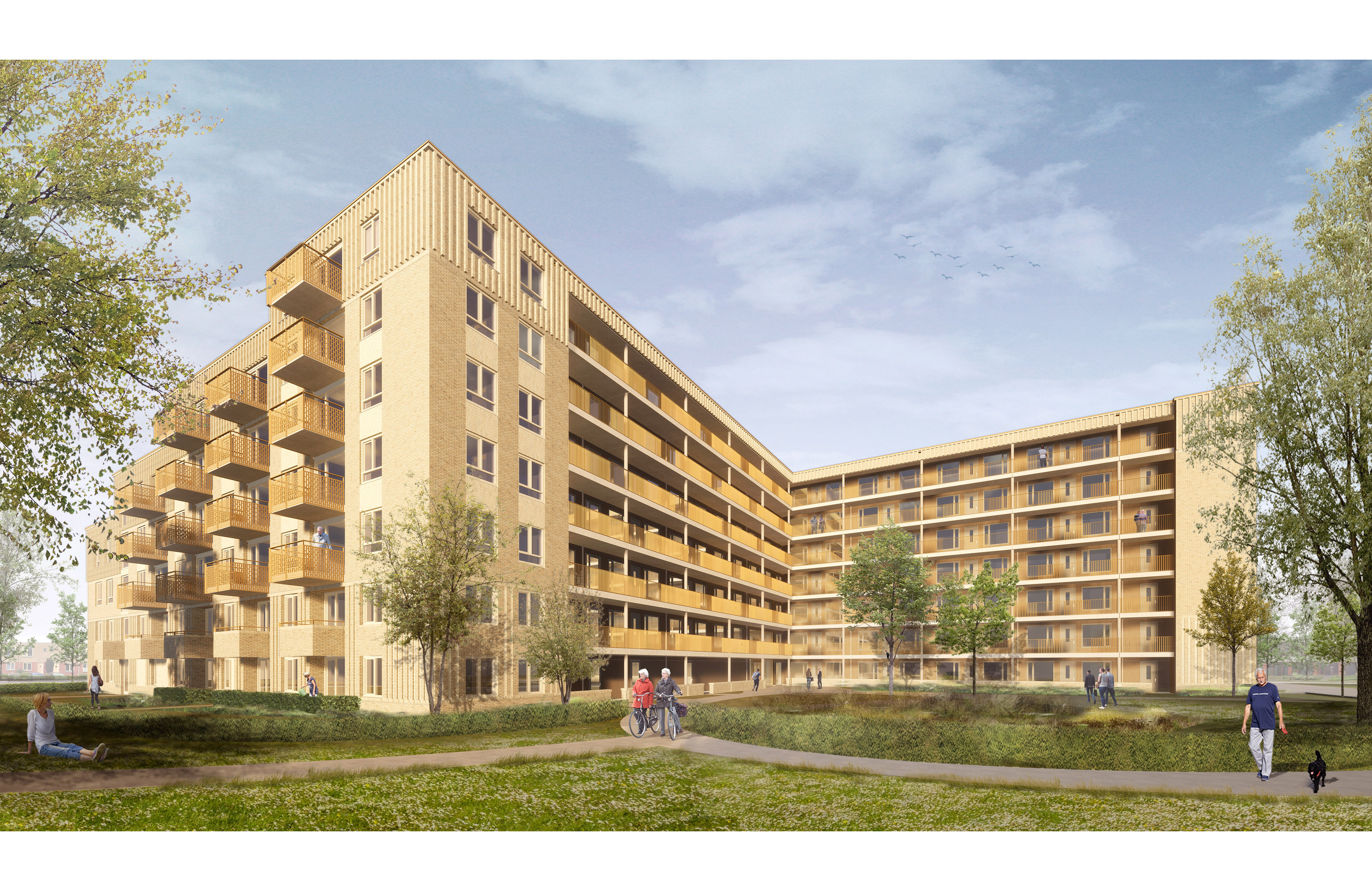 Samenwonen met collectieve huiskamer en daktuin, 95 sociale huurappartementen.