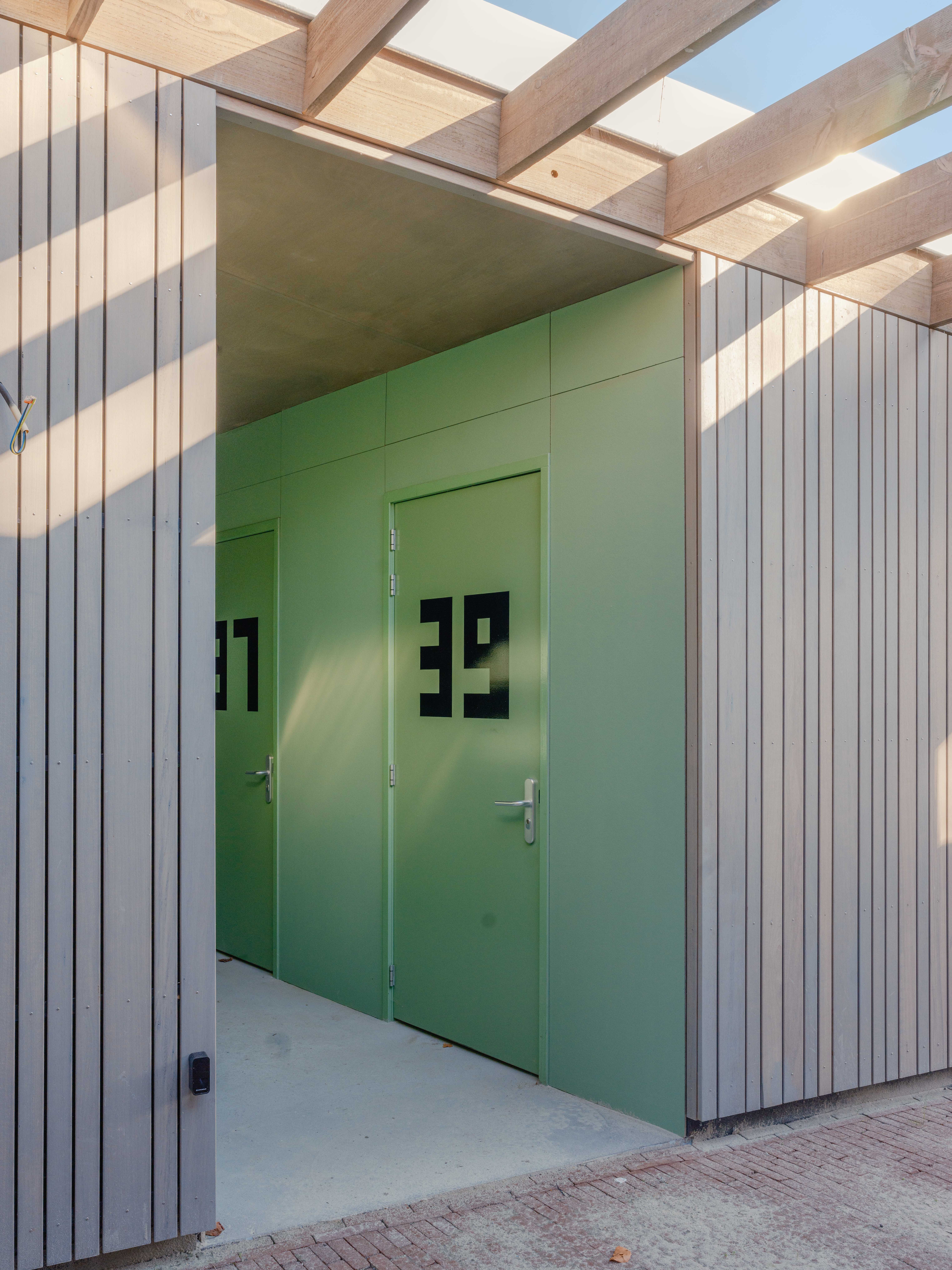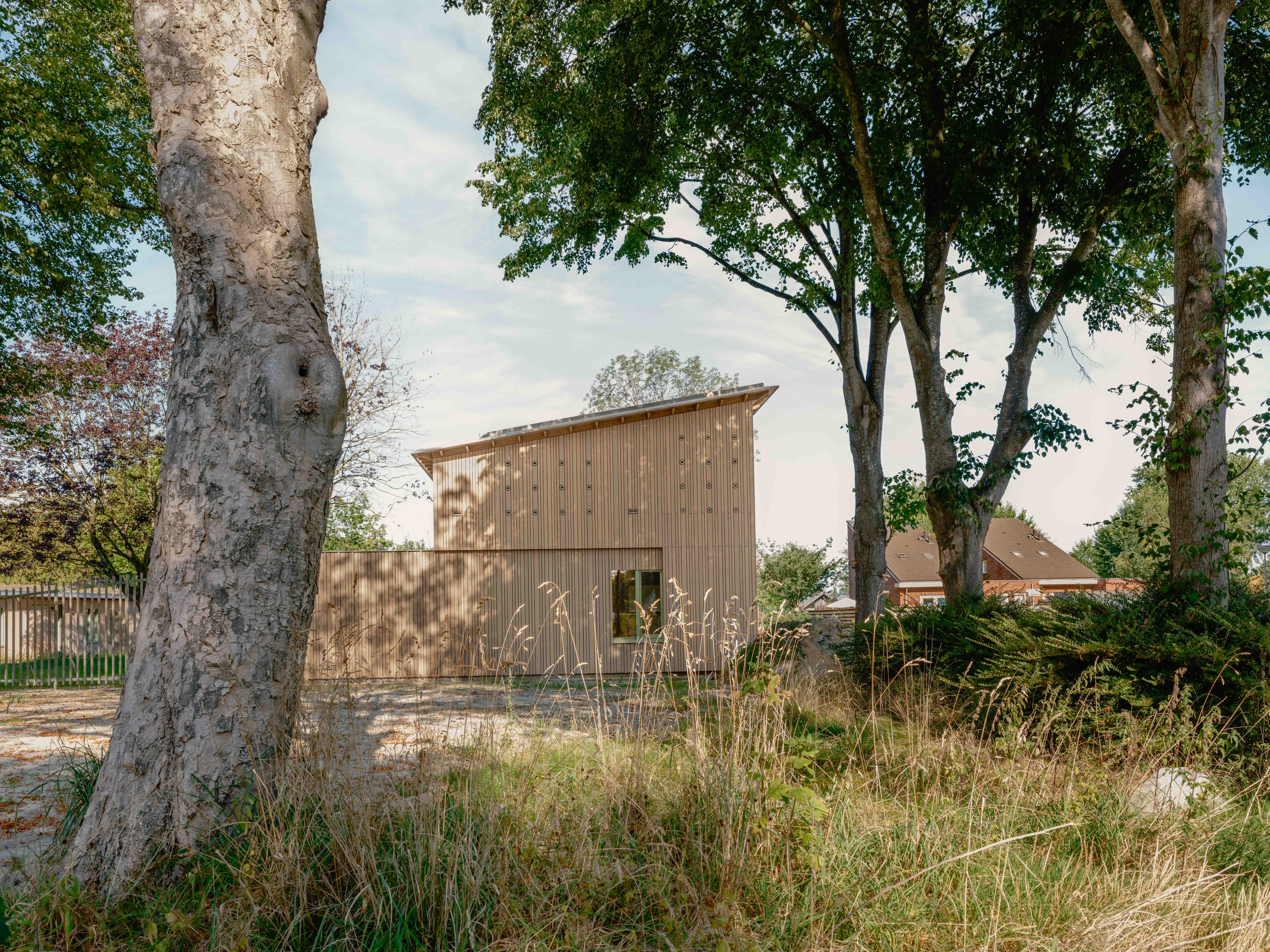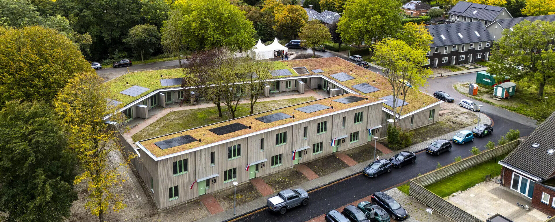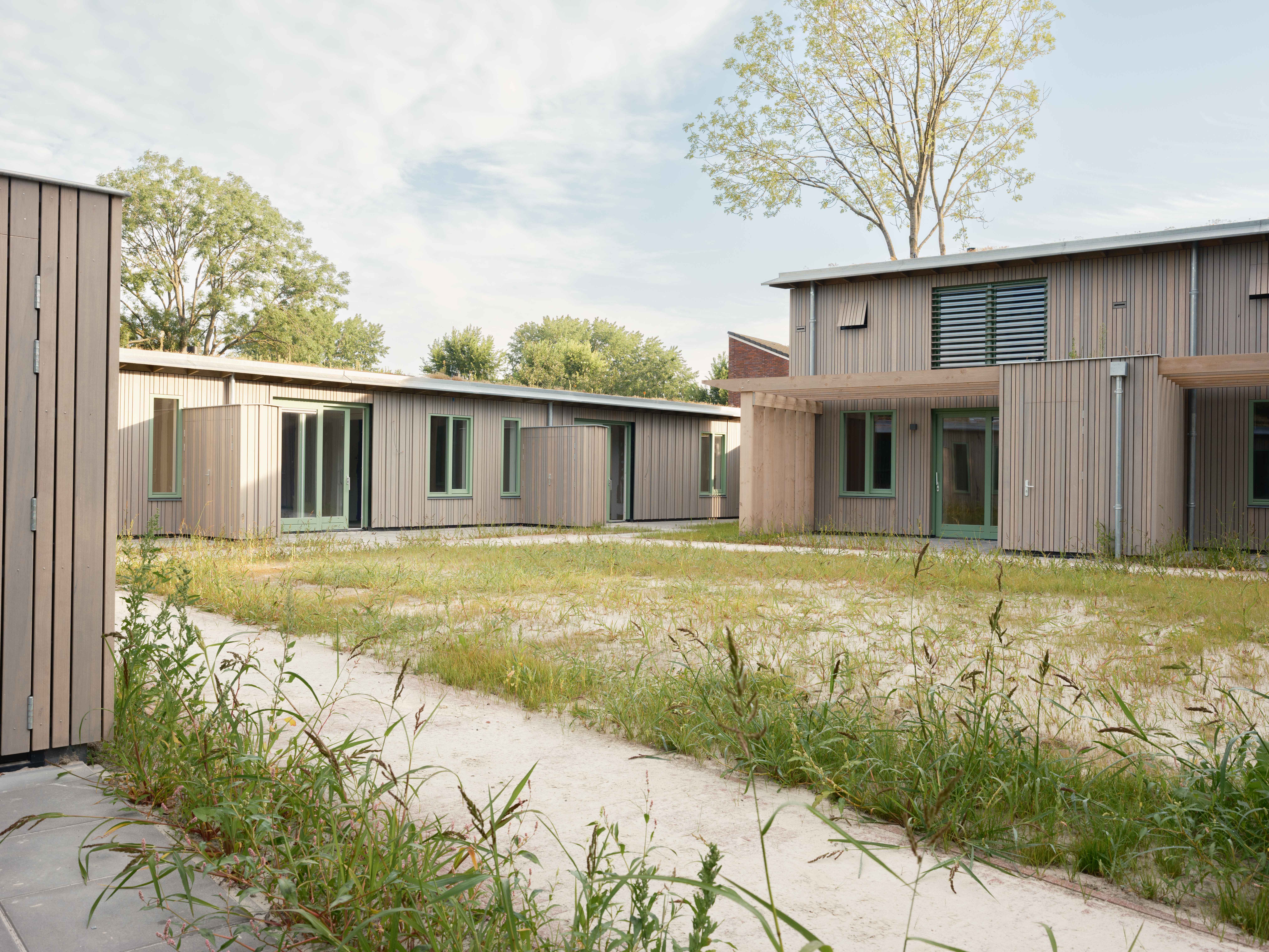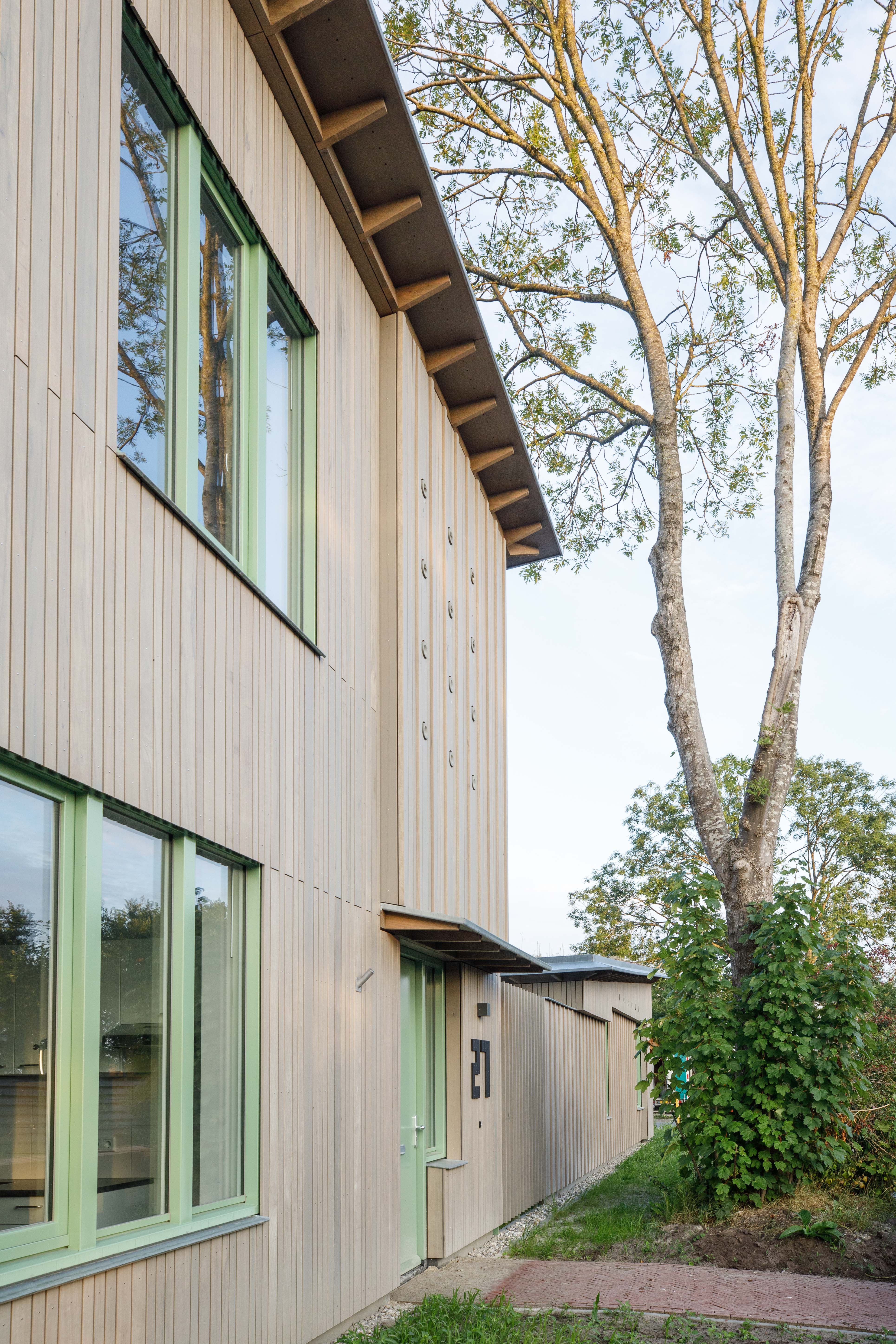 Het sociale woongebouw is vooruitstrevend op het gebied van duurzaamheid. Het is klimaatadaptief, natuurinclusief en zoveel mogelijk gebouwd uit duurzame materialen. Dankzij de groene daken kan regenwater tijdelijk kan worden opgeslagen en blijft het gebouw bovendien koeler in de zomer. Ook de dakoverstekken en de pergola’s en lamellen aan de zuidgevels helpen opwarming te voorkomen. Daarnaast zorgen de bestaande bomen voor schaduw in de zomer, terwijl in de winter wanneer de bomen hun bladeren laten vallen juist gebruik kan worden gemaakt van het opwarmende effect van de zon. Er is ruimte voor vogels en vleermuizen in de zorgvuldig mee-ontworpen nestkasten in de houten gevels. Met veel vakmanschap en passie zijn de houten geveldelen aangebracht en daarnaast is ook de draagconstructie uitgevoerd in hout. Dankzij de prefab houten delen kon relatief snel worden gebouwd.